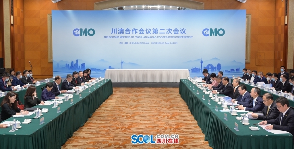 贺一诚说,2021年是国家“十四五”规划的开局之年,也是开启全面建设社会主义现代化国家新征程、向第二个百年奋斗目标迈进的关键之年。在中央政府的大力支持下,澳门特别行政区全面准确贯彻落实“一国两制”、“澳人治澳”、高度自治的方针,统筹经济社会发展和疫情防控等各项工作,推进具有澳门特色的“一国两制”成功实践行稳致远。澳门特别行政区和四川省自2018年川澳合作会议第一次会议举行及川澳合作机制正式建立以来,两地政府部门和业界积极拓展在会展、中医药、青少年交流、科技创新等领域合作,成效不断显现。澳门特别行政区将充分把握“一带一路”和粤港澳大湾区建设等国家发展战略机遇,发挥澳门的特殊优势,务实推动川澳合作不断深化、拓展和创新,积极助力成渝地区双城经济圈建设。在产业融合发展方面,澳门正加大力度推进现代金融服务业发展,希望双方共创有利条件,鼓励四川企业到澳门发债融资,进一步促进两地金融业合作。在中医药产业发展方面,希望川澳两地在推进中医药高质量发展、推动中医药走向海外市场等方面加强合作,鼓励四川业界通过澳门平台,以医带药,将更多优质的中医药产品和技术拓展至葡语国家、欧盟及“一带一路”沿线国家和地区的市场。在推进社会治理合作方面,希望两地持续加强交流,通过加大人员互访和联合培训等方式,进一步促进川澳在社区治理方面加强合作。建设横琴粤澳深度合作区,为具有澳门特色的“一国两制”实践行稳致远注入了新动能,为澳门长远发展注入了新动力、提供了新空间、创造了新机遇。目前粤澳正在共同加快合作区的筹建工作,我们诚挚欢迎四川参与合作区建设。