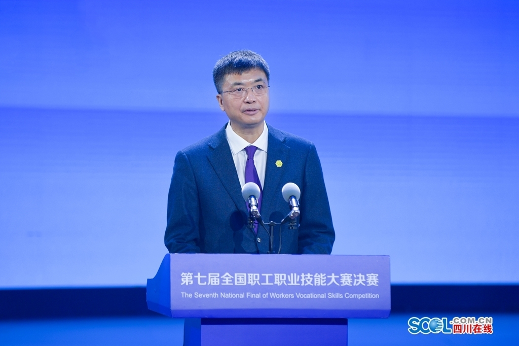 陈刚在讲话中代表中华全国总工会和本届大赛组委会,向各位参赛选手、技术指导致以亲切问候,向裁判员、公证员、工作人员、志愿者致以崇高敬意。他指出,习近平总书记在中央人才工作会议上强调,要深入实施新时代人才强国战略,全方位培养、引进、用好人才,加快建设世界重要人才中心和创新高地。我们要学习贯彻习近平总书记重要讲话精神,充分认识大赛对提升职工素质、推进科技创新、培养高技能人才的推动作用,切实把职工技能盛会办好。劳动和技能竞赛是工会的传统优势、工作品牌,新时代要注入新内涵。全国职工职业技能大赛是展示劳动和技能竞赛成果的重要窗口,本届大赛是历届大赛参与主办部门最多、竞赛工种最多、覆盖行业最广、参赛职工最多的国家级一类职业技能大赛,为广大技术工人搭建了展示精湛技能、同台切磋高超技艺的重要平台。希望各位参赛选手努力拼搏、奋勇争先,赛出风格、赛出水平。希望大赛各主办单位以高度负责精神做好各项工作,严格落实疫情防控要求,确保大赛安全高效有序举行。进入新发展阶段,新一轮科技革命和产业变革深入发展,对开展劳动和技能竞赛提出了新的更高要求。要以推进产业工人队伍建设改革为抓手,组织职工广泛深入持久开展劳动和技能竞赛及“五小”等群众性创新活动,发挥劳模、工匠创新工作室作用,在关键核心技术攻关、解决“卡脖子”上展示技能,建功“十四五”、奋进新征程。要把弘扬劳模精神、劳动精神、工匠精神贯穿工作各方面,引导职工学赶先进、见贤思齐,推动企业关爱劳模、尊重人才,使劳动最光荣、劳动最崇高、劳动最伟大、劳动最美丽在全社会蔚然成风。