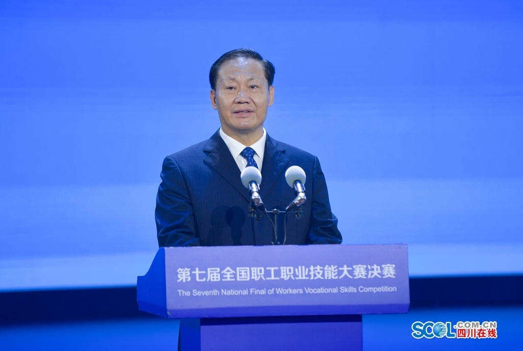 彭清华在致辞中代表省委、省政府,向决赛的举办表示祝贺,向全国各地参赛选手及各界嘉宾表示欢迎。他指出,职工技能人才是支撑中国制造、中国创造的重要力量,在加快产业优化升级、提高企业竞争力、推动技术创新和科技成果转化等方面具有不可替代的重要作用。党的十八大以来,以习近平同志为核心的党中央对劳动者高度重视、亲切关怀,习近平总书记多次作出重要指示批示,为新时代劳动者指明了奋斗方向,为我们抓好职工技能人才队伍建设提供了根本遵循。近年来,四川坚定以习近平新时代中国特色社会主义思想为指导,深入学习贯彻习近平总书记关于人才工作的重要论述,坚持把发挥高素质劳动者、创造性人才作用摆在突出位置来抓,大力实施高技能人才振兴计划,健全完善产才融合和人才激励机制,广泛开展各种劳动技能大赛,一大批技艺精湛的“大国工匠”“天府工匠”脱颖而出,引领带动全省广大职工踊跃投身火热实践,为推动改革发展、铸造国之重器、造福人民群众作出了积极贡献,有力展现了劳动者的奋斗姿态和时代风采。迈步新征程、谱写新篇章,对工人阶级和广大劳动群众的能力水平提出了新的更高要求。本届全国职工职业技能大赛以“弘扬工匠精神、推动高质量发展”为主题,必将发掘更多高技能人才,激励引导广大产业工人勤于钻研技术、练就过硬本领,加快建设一支宏大的知识型、技能型、创新型劳动者大军。相信广大参赛选手一定能赛出风格、赛出水平,充分展现中国制造的先进技术和中国技工的高超技艺。我们将做好服务保障工作,为决赛的顺利举行创造良好环境,并以此为契机推动全省广大职工传承匠心、精进技能,在互学互鉴、奋勇争先中创造新的业绩。